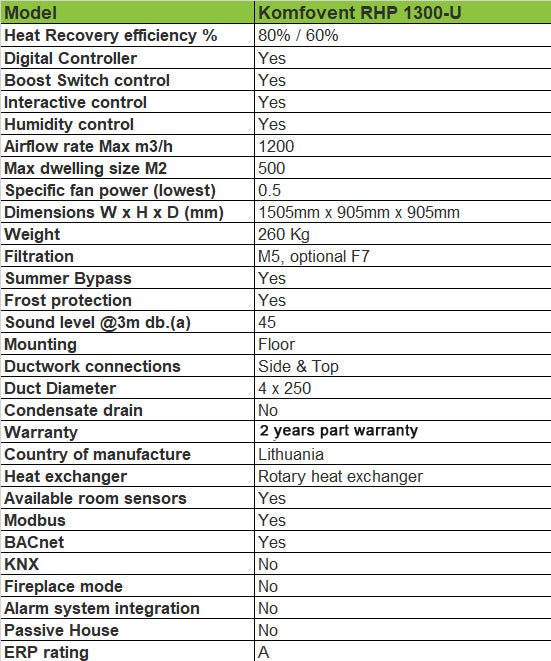 - Maximum airflow rate - 1300m3/h