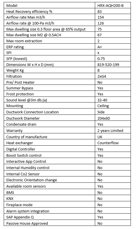 The Domus HRX-AQH200-B is a compact and intelligent ceiling mounted unit and with a height of only 200mm it is suitable for narrow service voids