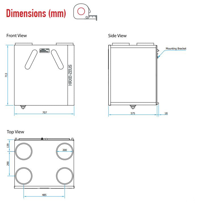 The Domus HRXE-ZEUS-H provides a maximum flow rate of 550m3/hr suitable for a house up to 330 m2 floor area with up to 10 kitchens & bathrooms