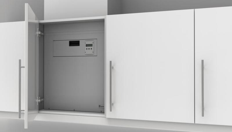 Designed with both installers and homeowners in mind, the Natural Air 180 has a compact footprint (552 × 609 × 285 mm) and comes in two lightweight sections for easy handling and cupboard installation. Front access allows for straightforward maintenance, filter changes, and control adjustments. The unit runs continuously and includes three adjustable airflow speeds — trickle, boost, and purge — which can be pre-set via the integrated front controller.
