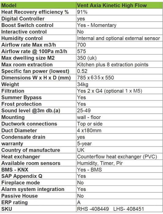 Vent Axia Sentinel Kinetic Highflow Heat Recovery (RH) Unit - 408449